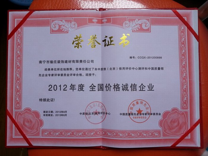 全國(guó)價(jià)格誠(chéng)信企業(yè)證書